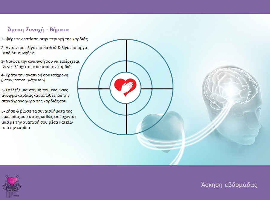 Στη συνέχεια εφάρμοσε την Καρδιακή Αναπνοή (δες εβδομάδα 1) για να επιστρέψεις στο κέντρο